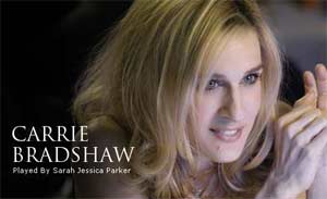 The most fashion-forward of all the Sex and the City girls, Carrie's style defies all categorization. Rummage through Carrie's closet and you'll find haute couture pieces side by side with vintage frocks, downtown club wear and miles of Manolo Blahnik stilettos. Carrie expresses her eclectic, whimsical self and that of her city through a masterful and sometimes outrageous mix of these styles. A fashion chameleon, Carrie can start her day looking like a streetwise pixie, change into a neo-bohemian outfit for lunch, don an elegant princess dress for dinner and slip into a skin-baring ensemble for a late-night party. Every season, she makes a signature statement through her accessories. First it was the nameplate necklace, then the flower pins, and "baguette" bags and then, gloves, newsboy hats and the diamond/gold stackable jewelry from Mia and Lizzie.